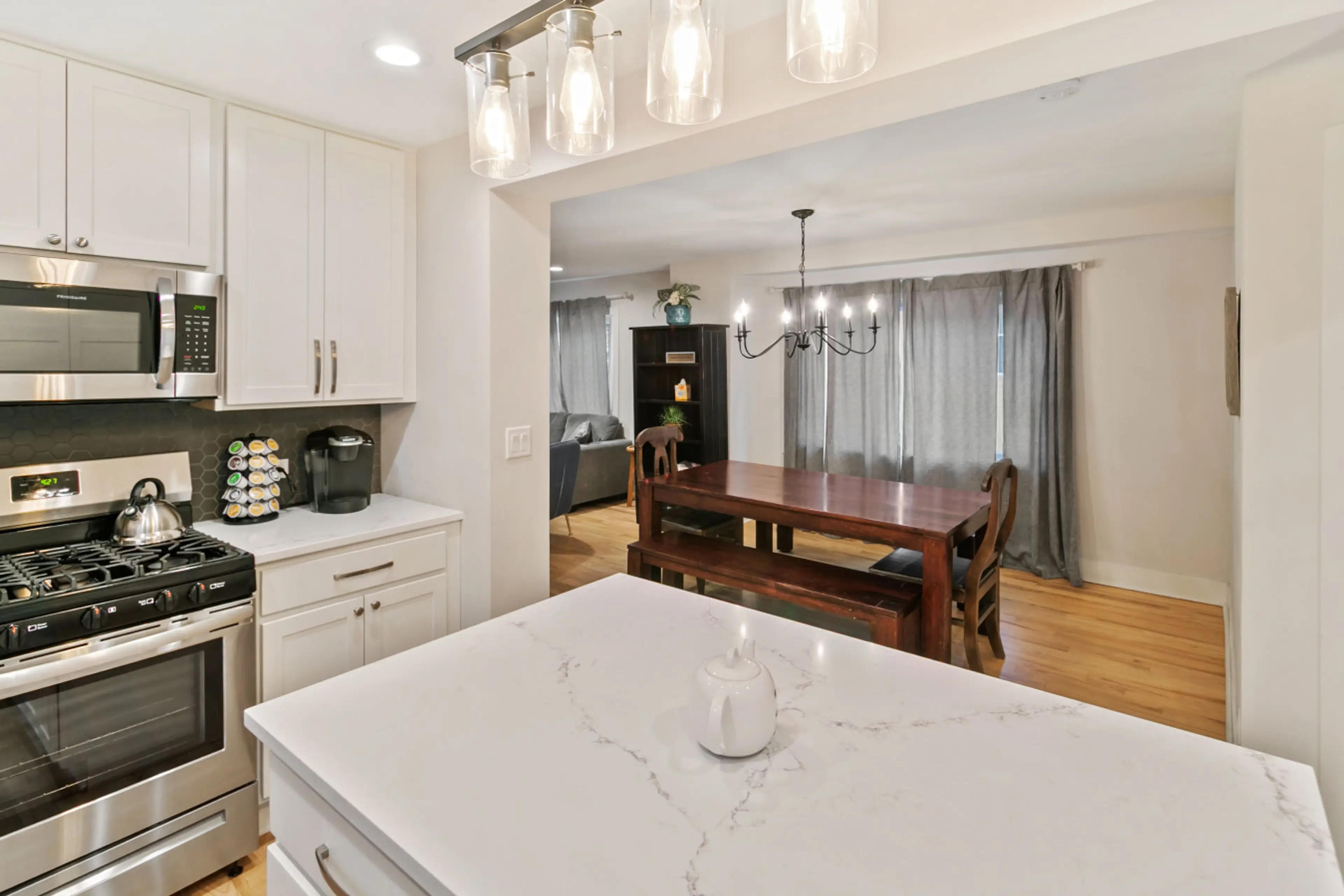 4 bedroom & 2.5 bathroom 2-story home walking distance to downtown Libertyville. EVERYTHING inside the home is new. Master suite with large walk-in closet private master bath. Newly built front porch. Home sleeps 11 comfortably w/ 1King, 2 Queens, & Twin/Queen bunk bed. Sofa Bed in living room. - F...